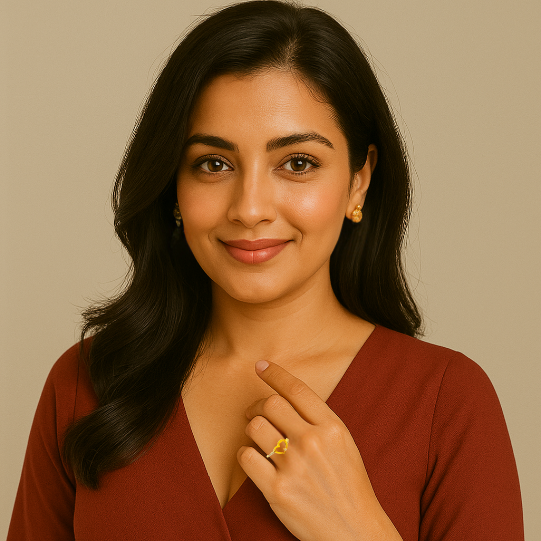 Golden Open Heart Diamond Ring